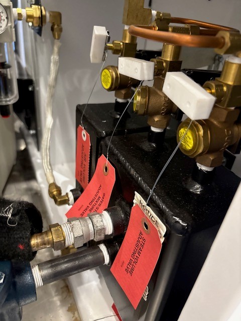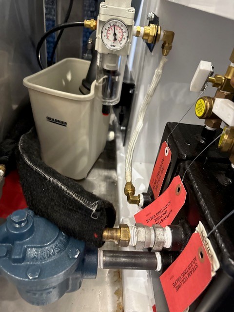 옷에서 스팀·물·약제를 계속 빨아들이면 어디론가 흘러가야 하는데 보통은 배큠 탱크로 들어간다고 생각한다. 실제로는 그전에 배관에서 막히는 경우가 대부분이다. 포렌타는 배큠 작동 시 자동 배수되는 체크 밸브를 추가했다. 나 같은 옛날 사람은 중앙 배큠 탱크에 이런 방식의 밸브를 달아 쓰곤 했다. 배큠이 켜지면 밸브가 닫히고, 배큠을 끄면 밸브가 열리면서 하루 동안 프레스에서 빨려 들어온 물이 자동으로 배수됐다.