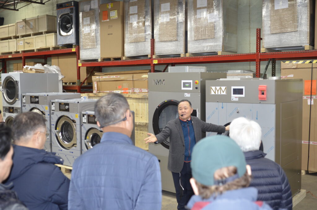 이날 오픈 하우스에서 이 사장은 NYM 브랜드를 공개했는데, 드라이클리닝 머쉰, 드라이-투-드라이 워셔, 스팀 드라이어 그리고 론드로맷 장비 등을 선보였다.
