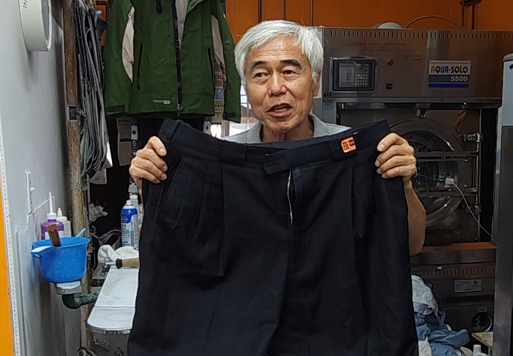 100% 웨트클리너 손명식 사장이 100% 울 바지 세탁 방법을 설명합니다