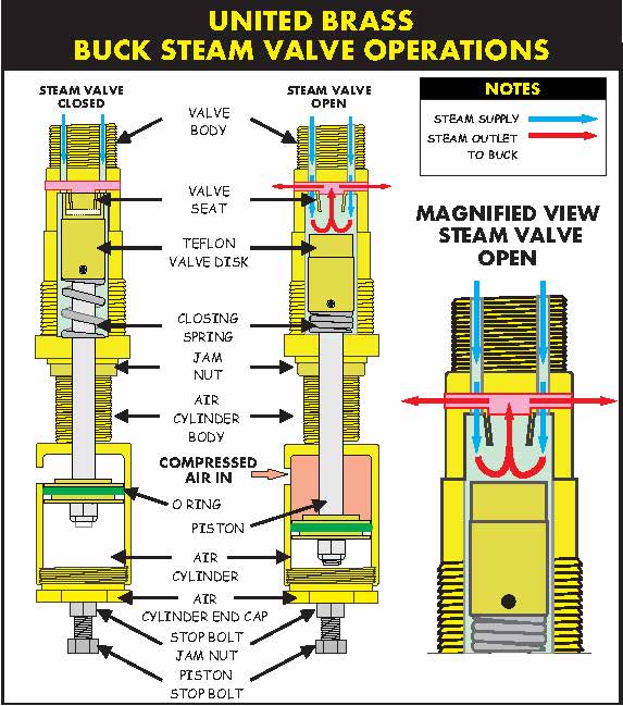 Now that we’ve covered the basics of what a buck is, let’s drill down and discover just how the buck valve actually controls the steam flow through the buck (use the accompanying illustration to more easily visualize the operation of the valve). With air (pneumatically) operated valves, there are twTop of Form