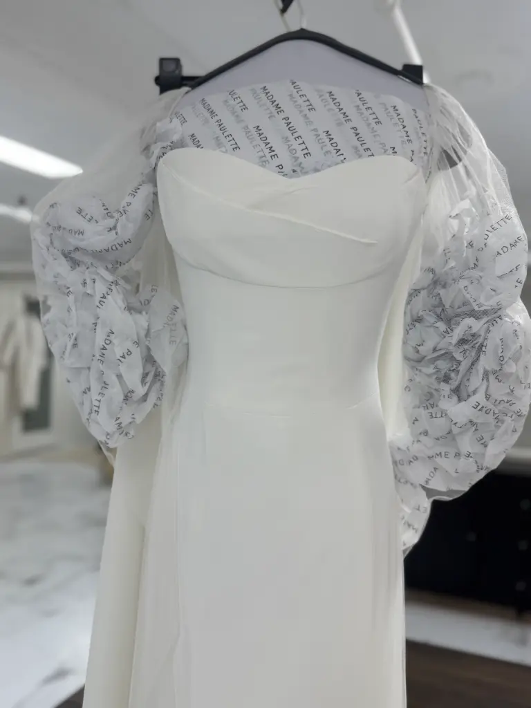 Claudia Li Johnson’s wedding dress was found this week inside the Madame Paulette warehouse, according to a company rep, who shared a photo of the dress with The Post. (Obtained by the NY Post)